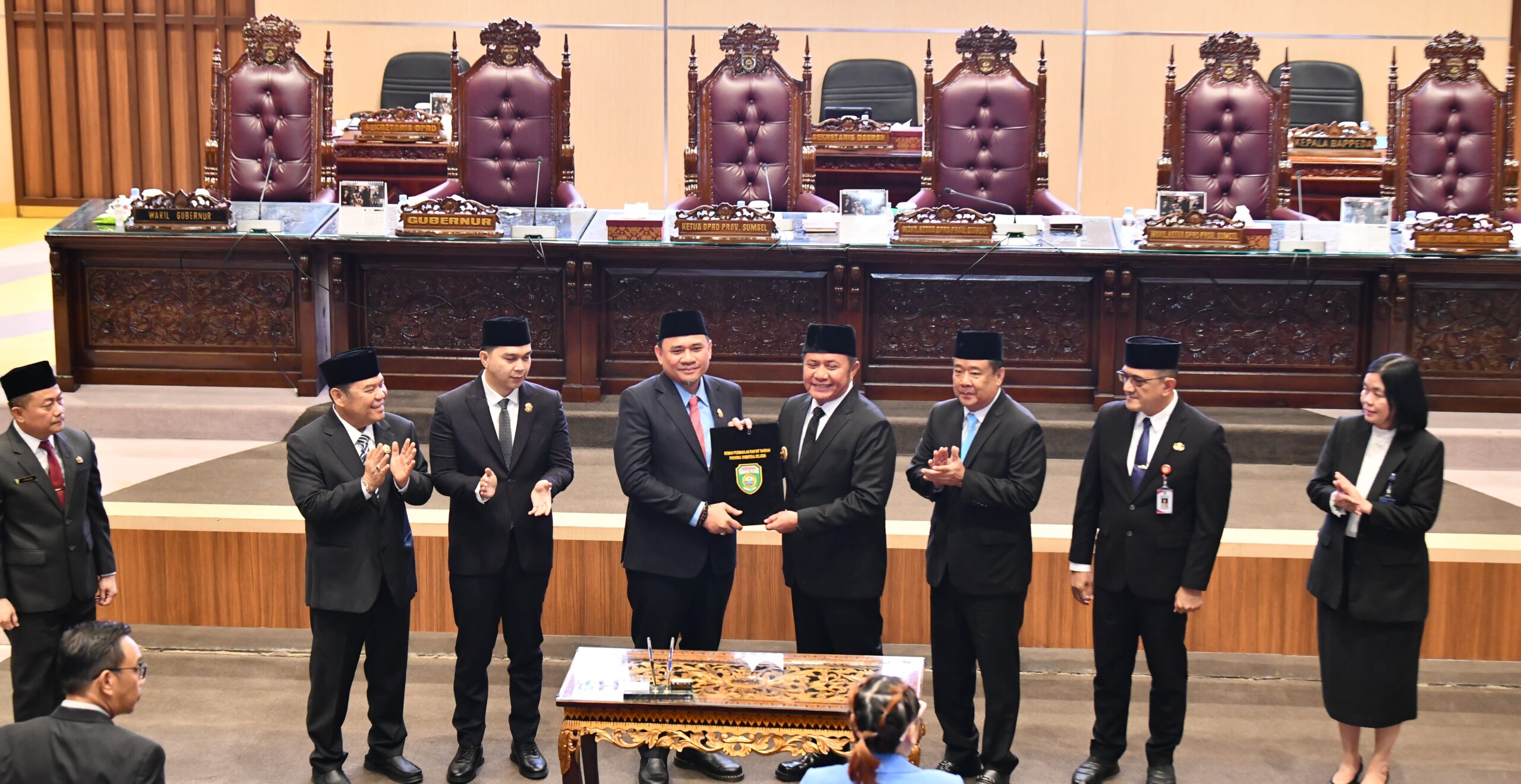 Rapat Paripurna XIII (13) DPRD Prov.Sumsel dengan Agenda Penandatanganan Nota Kesepakatan Antara Gubernur Sumsel dengan DPRD Prov.Sumsel tentang Rancangan Awal RPJMD Prov.Sumsel Tahun 2025-2029 dipimpin oleh Ketua DPRD Prov.Sumsel Andie Dinialdie, SE didampingi oleh para Wakil Ketua DPRD Prov.Sumsel; Raden Gempita, SH, dan H.M. Ilyas Panji Alam, S.E., S.H., M.M, dihadiri oleh Gubernur Sumsel H. Herman Deru, SH, MM, dan Wakil Gubernur Sumsel; H.Cik Ujang, SH, Sekretaris Daerah; Drs. H. Edward Chandra, MH, Sekretaris DPRD; H. Aprizal, S.Ag, SE, M.Si, Para Kepala Dinas serta perwakilan Organisasi Perangkat Daerah (OPD) di lingkungan Pemprov Sumsel serta tamu undangan lainnya.